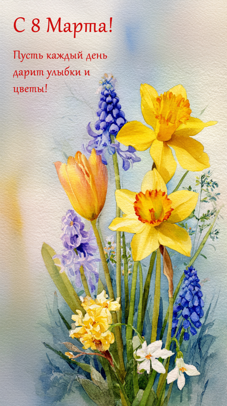 Универсальные поздравительные открытки подходят для любой получательницы: коллеги, подруги, учительницы или дальней родственницы. Главное, чтобы изображение создавало весеннее настроение и передавало тепло пожеланий.