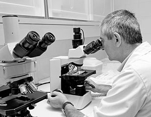 Вирус с Украины проходит проверку в Совете медицинских исследований в лабораториях Милл Хилл в Лондоне.