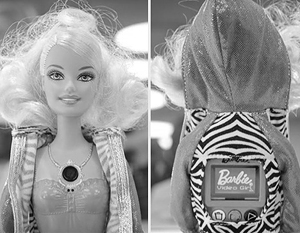Кукла Barbie Video Girl, оснащена скрытой видеокамерой, позволяющей сделать 30-минутную видеозапись, которую затем легко перенести на компьютер.