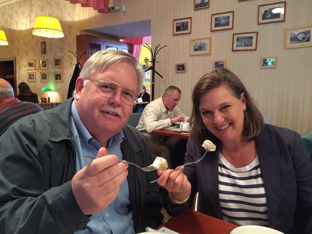 «Нуланд и Теффт угощаются пельменями со сметаной (любимое блюдо Теффта) перед завтрашними переговорами», – написал Стивенс в своем микроблоге в Twitter.
