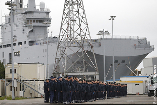 В 2014 году Париж приостановил поставку кораблей, за которые получил деньги, мотивируя это своим несогласием с политикой России на Украине. Оппозиция и профсоюзы Франции раскритиковали президента Пятой республики за отказ поставить России «Мистрали», намекнув на давление со стороны Вашингтона.