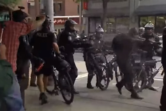 В американском городе Сиэтл, штат Вашингтон, где в воскресенье произошли столкновения между стражами порядка и демонстрантами, полиция применила против протестующих перцовые аэрозоли и светошумовые гранаты, сообщила телекомпания ABC.