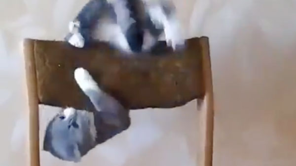 В социальных сетях появился видеоролик, на котором котенок-гимнаст выполняет сложнейшие упражнения на стульях.
