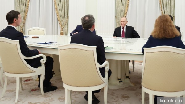 Президент России Владимир Путин проводит в Кремле встречу со спецпосланником президента США Стивеном Уиткоффом и предпринимателем Джаредом Кушнером, зятем американского лидера.