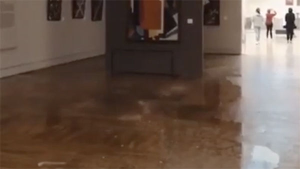 В среду зал Новой Третьяковки на Крымском валу затопила вода, которая проникла в помещение из-за непрекращающегося на протяжении нескольких часов дождя. Пресс-служба галереи сообщила, что причиной протечки крыши стал прорыв изношенной ливневой канализации.