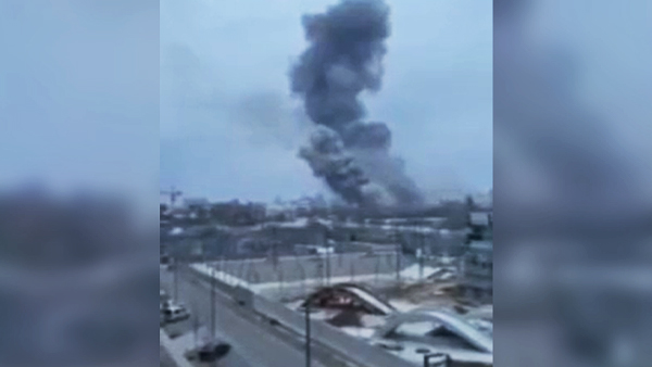На кадрах можно увидеть серые клубы дыма, поднимающиеся на заднем плане.