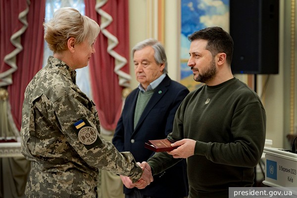 Он посещал Украину 8 марта и украинский президент Владимир Зеленский устроил мероприятие, которое предполагало вручение медалей военным, не предупредив Гутерреша. Позднее Украина опубликовала фотографии и видео, на которых Гутерреш оказался запечатлен в рамках церемонии.