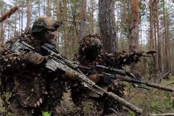 Минобороны пояснило в Telegram, что снайперские пары скрытно выдвигаются в район выполнения боевых задач, подавляют огневые точки и пулеметные расчеты ВСУ, прикрывая действия групп спецназа.