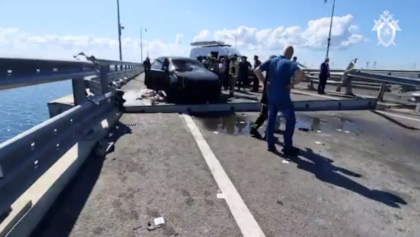 Следственный комитет России опубликовал видео последствий украинской ночной атаки на Крымский мост.