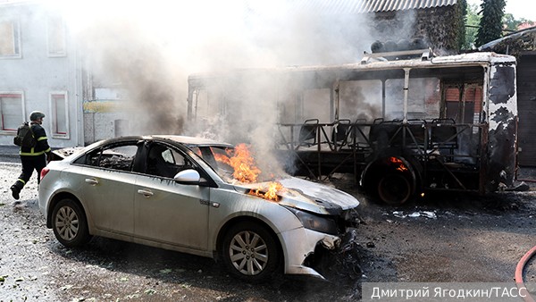 Как отметил в своем Telegram-канале мэр Алексей Кулемзин, из-за прямого попадания снарядов в Ворошиловском районе горит автобус, который следовал по маршруту, также полностью сгорели два автомобиля.