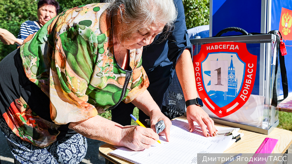На участках, образованных на территории четырех «новых» субъектов, голосуют жители других регионов, которые работают там над восстановлением инфраструктуры.
