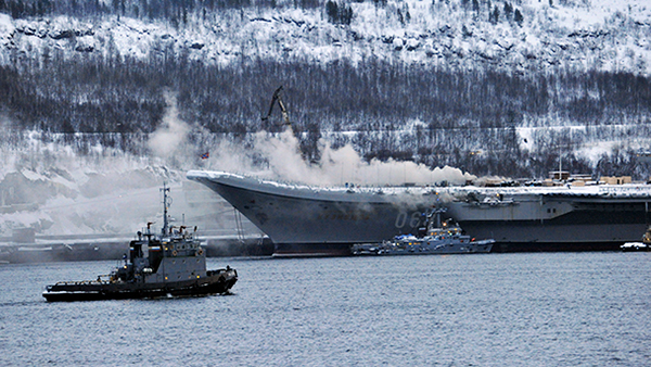 12 декабря на авианесущем крейсере «Адмирал Кузнецов» начался пожар. Возгорание произошло во время ремонта в первом энергоотсеке на второй палубе. Число пострадавших достигло 12 человек, трое считаются пропавшими без вести (фото: Лев Федосеев/ТАСС)
