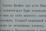 Запись беседы полпреда СССР в Чехословакии С. С. Александровского с министром иностранных дел Чехословакии К. Крофтой о давлении Англии и Франции на Чехословакию с целью предоставления дополнительных прав судетским немцам и возможном участии Польши в нападении Германии на Чехословакию. 14 июня 1938 г. (фото: Историко-документальный департамент МИД России)