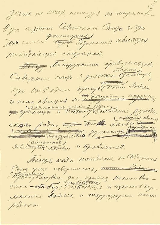Рукописный текст выступления В.М. Молотова по радио