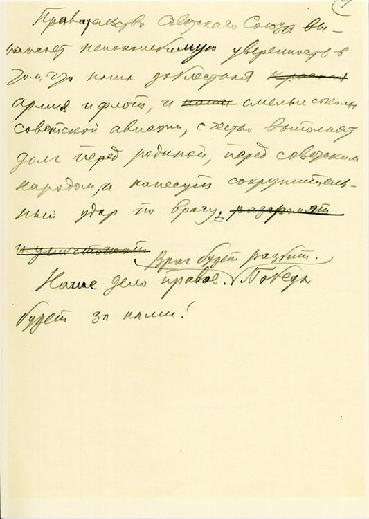 Красная армия, весь наш народ вновь поведут победоносную Отечественную войну за Родину, за честь, за свободу… Наше дело правое. Враг будет разбит. Победа будет за нами!»