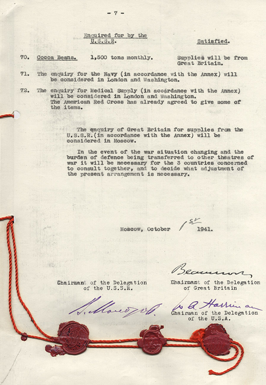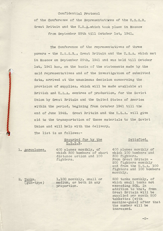 Конференция представителей СССР, Великобритании и США в Москве. Протоколы о военных поставках. (фото: Историко-документальный департамент МИД России)