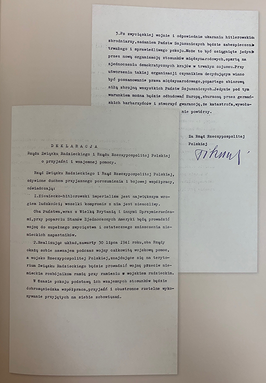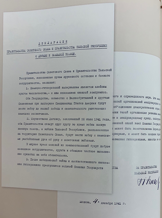 Декларация правительства СССР и правительства Польской Республики о дружбе и взаимной помощи. 4 декабря 1941 г., рус., польск. яз. (фото: Историко-документальный департамент МИД России)