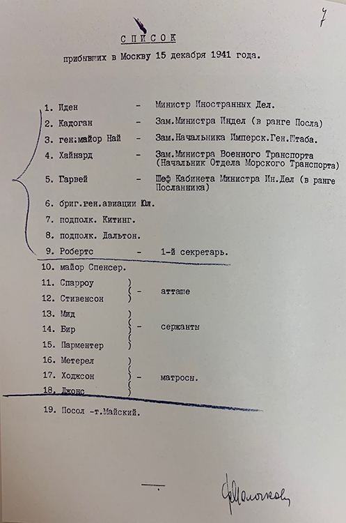 Состав делегации Великобритании, прибывшей в Москву 15 декабря 1941 г. (фото: Историко-документальный департамент МИД России)
