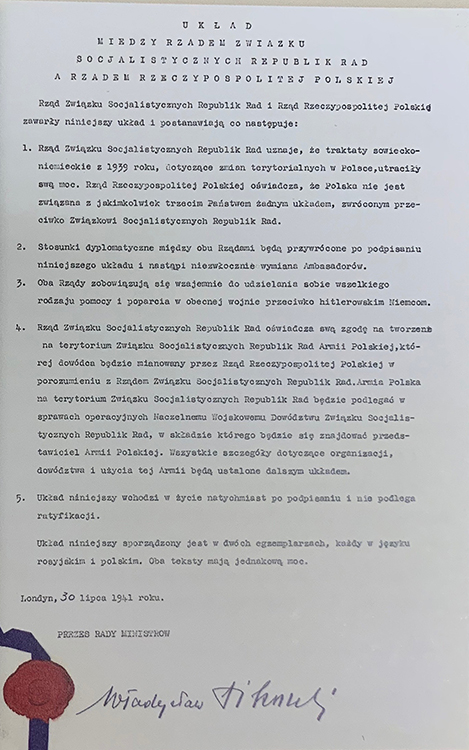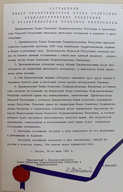 Соглашение между правительством СССР и правительством Польской Республики. 30 июля 1941 г. (фото: Историко-документальный департамент МИД России)