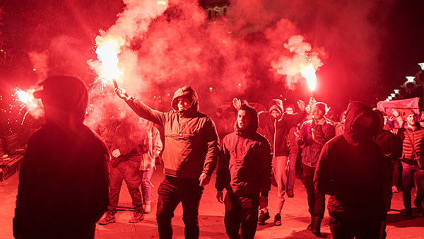 В Белграде прошел митинг в поддержку сербского населения Косова и Метохии. Участники акции исполнили патриотические песни и скандировали лозунги «Сербы и русские братья навек», «Косово – сердце Сербии», а также антинатовские кричалки (фото: REUTERS/Marko Djurica)