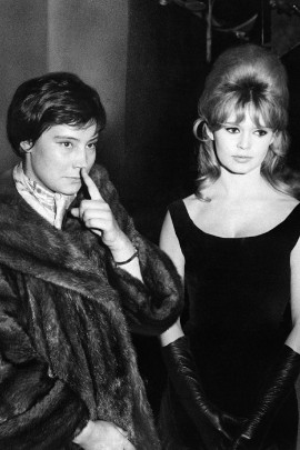 Также Бардо работала в кадре с Аленом Делоном (альманах «Три шага в бреду» по произведениям Эдгара Аллана По, новелла «Уильям Уилсон»), Витторио Де Сикой (комедия «Любовница Нерона»), Жаном Габеном (драма «В случае несчастья»), Марчелло Мастроянни (драма «Частная жизнь») и Шоном Коннери (вестерн «Шалако»). Среди ее партнерш по экрану были Жанна Моро (мелодрама «Вива, Мария!») и Клаудия Кардинале (вестерн «Нефтедобытчицы»). На фото: актриса с музыкантом Сержем Генсбуром (фото: Botti/Stills/Photo News/imago-images/TASS)