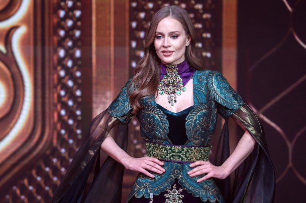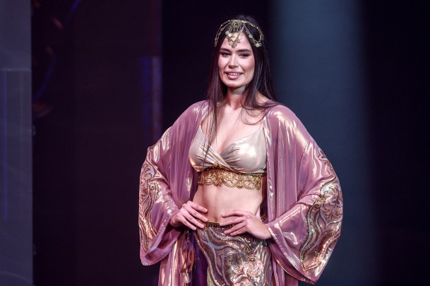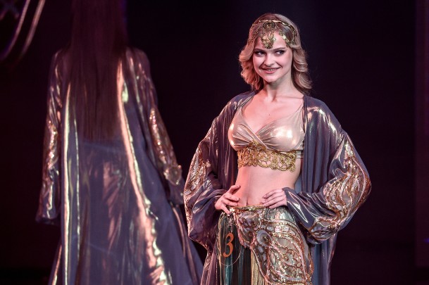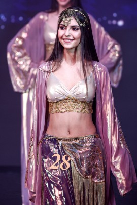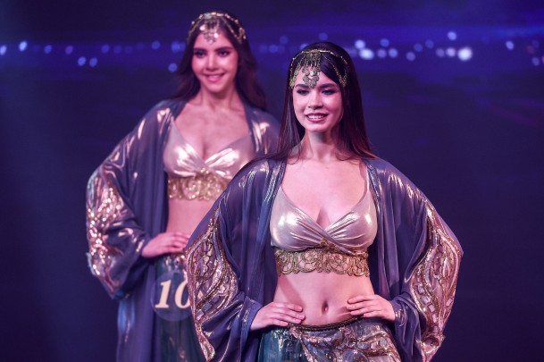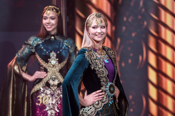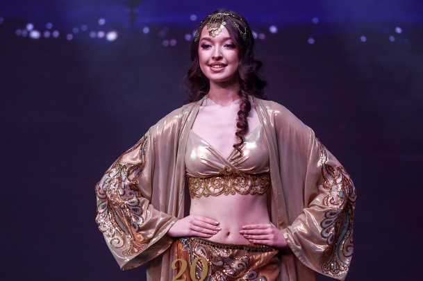 Всего в финале участвовали 30 красавиц. Оформление сцены и костюмов девушек было выполнено в восточной тематике. На фото: Ульяна Груздева (на первом плане) (фото: Егор Алеев/ТАСС)