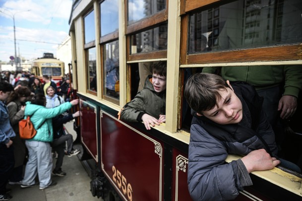 Московский электрический трамвай начал свою работу 6 апреля 1899 года. Традиционно парады в честь этой даты проводятся в ближайшую к юбилею субботу (фото: Чингаев Ярослав/Агентство «Москва»)