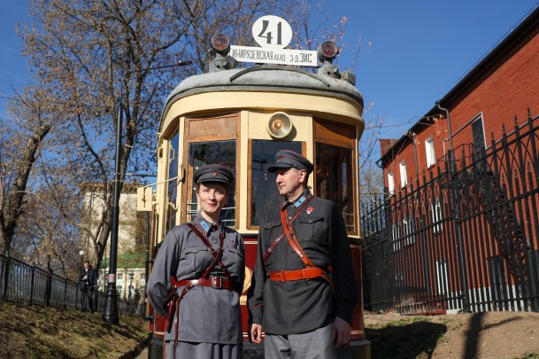 Реконструкторы в костюмах 1930-х годов создали атмосферу прошлого века, также была представлена выставка исторической формы сотрудников трамвайного комплекса (фото: Чингаев Ярослав/Агентство «Москва»)