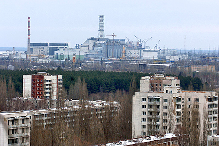 Вид на 72-х метровую вентеляционную трубу 4-го реактора ЧАЭС (фото: ИТАР-ТАСС)