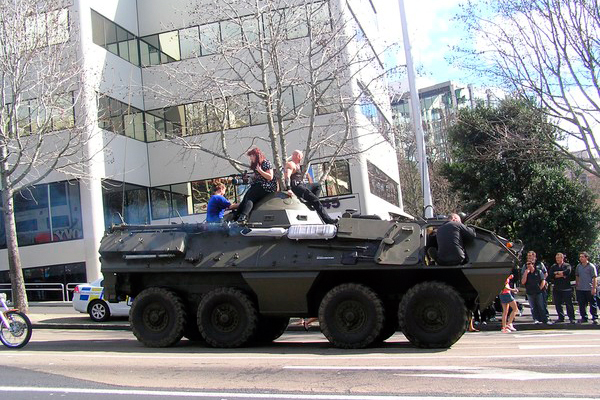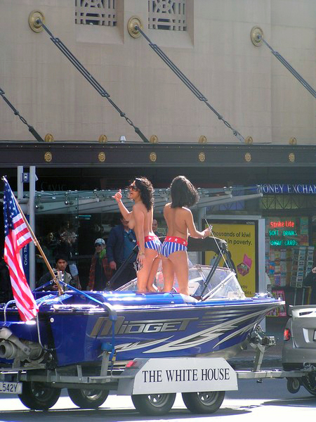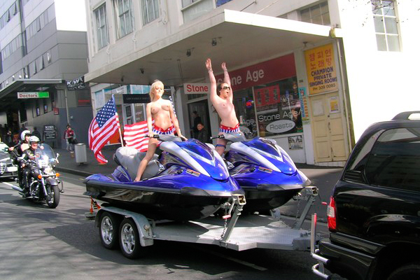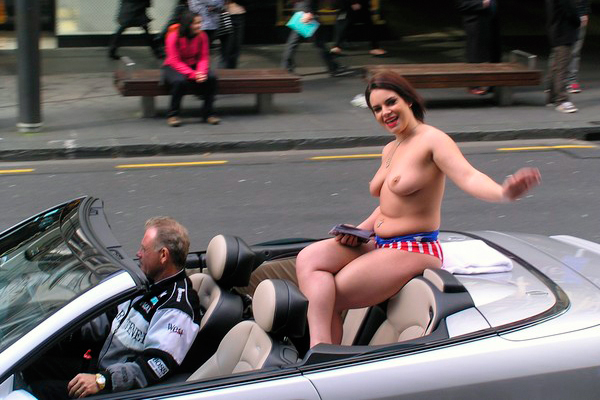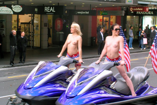 К «Сиськам на мотоциклах» в этом году присоединились любительницы обнажиться и на других транспортных средствах: автобусах, автомобилях, боевой машине пехоты и даже водном катере (фото: infonews.co.nz)