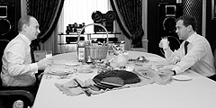Путин угостил Медведева хлебом и молоком