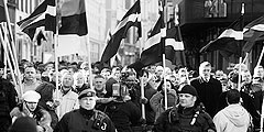 Полиция не допускала столкновений сторонников легиона СС с антифашистами. Тем не менее, по свидетельству очевидцев, в одном месте произошла небольшая взаимная перепалка, в итоге которой оппоненты оплевали друг друга (фото: Reuters)