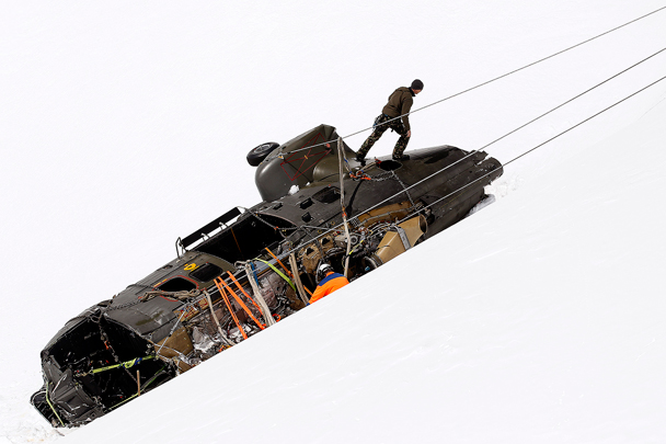 Разбившийся вертолет был зафиксирован с помощью специальных тросов (фото: Reuters)