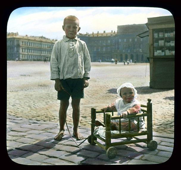 В сквере возле Зимнего Дворца. Бабушка вывезла на прогулку ребенка (фото: Branson DeCou archive/digitalcollections.ucsc.edu)
