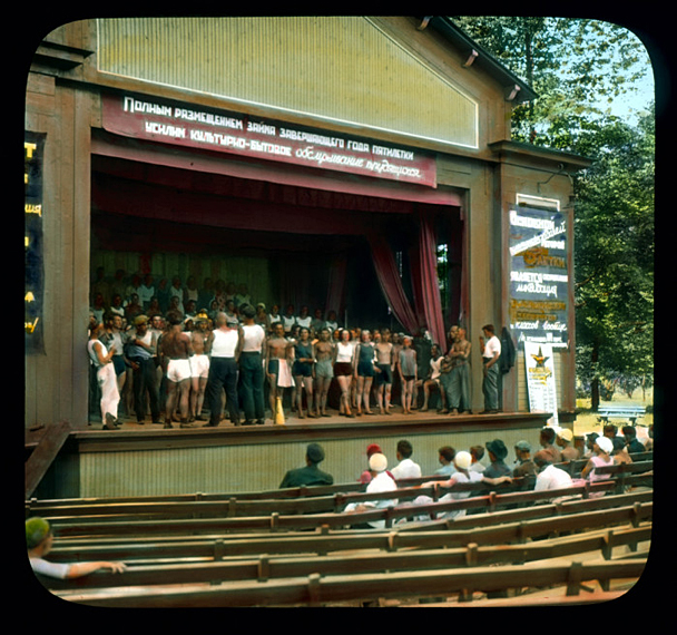 На открытой сцене выступают участники художественной самодеятельности  (фото: Branson DeCou archive/digitalcollections.ucsc.edu)