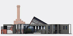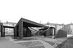 «Обводный канал – 2». По мысли архитекторов, в центре здания наружного вестибюля станции будет располагаться наклонный цилиндр. Он символизирует проходческий щит метростроевцев, вышедший на поверхность (фото: kapitel-spb.ru)