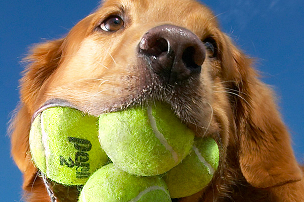 Мировой рекорд по количеству теннисных шариков во рту (пять штук) удерживает золотистый ретривер Оги, принадлежащий семье Миллеров в Техасе (фото: guinnessworldrecords.com)