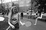 Фанаток отличали прекрасные спортивные костюмы с фирменными знаками группы Medvedev Girls. Самые лучшие игроки из числа прохожих получили в подарок набор для игры в бадминтон (фото: РИА "Новости")