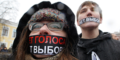 Наряду с англоязычными лозунгами прозападного толка на митинге можно было встретить и знакомый всем советским школьникам призыв революции 1917 года (фото: ИТАР-ТАСС)