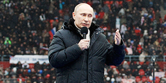 Участники митинга «Защитим страну!» в поддержку кандидата в президенты России Владимира Путина в спорткомплексе «Лужники» (фото: Reuters)