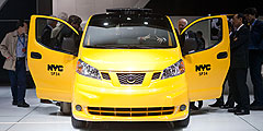 Nissan NV200, который с 2013 года станет официальным автомобилем таксистов Нью-Йорка. Об этом объявил ранее мэр города Майкл Блумберг. Это первый публичный показ автомобиля, который как раз пришелся на 100-летний юбилей нью-йоркского такси (фото: Reuters)