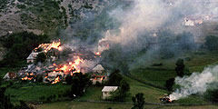 Лесной пожар спускается с вершины возле пригорода Мокошица знаменитого адриатического города-курорта Дубровник 17 августа 1995 года. Пожары возникли после обстрела этих мест сербской артиллерией и продолжались в течение недели (фото: Reuters)