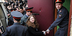 Таганский суд Москвы продлил срок ареста двум предполагаемым участницам группы Pussy Riot, устроившей «панк-молебен» в храме Христа Спасителя. Надежда Толоконникова и Мария Алехина останутся под стражей до конца июня (фото: ИТАР-ТАСС)
