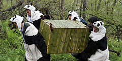 Сотрудники китайского заповедника переоделись в панд для важной операции (фото)