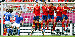 Фол испанского защитника Серхио Рамоса (справа) против итальянского нападающего Антонио Кассано (фото: Reuters)