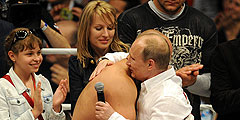 Президент России Владимир Путин пришел на поединок, чтобы лично поздравить Федора Емельяненко с победой (фото: ИТАР-ТАСС)