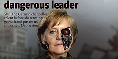 Британский еженедельный журнал New Statesman назвал канцлера Германии Ангелу Меркель самым опасным европейским лидером. На обложке она показана в образе Терминатора. Автор Мехди Хасан утверждает, что она представляет большую угрозу мировой стабильности и процветанию, чем северокорейский лидер Ким Чен Ун и президент Ирана Махмуд Ахмадинежад (фото: newstatesman.com)