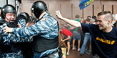 Милиции удалось оттеснить участников акции, но далеко не сразу - у манифестантов какое-то время получалось держать натиск (фото: Reuters)
