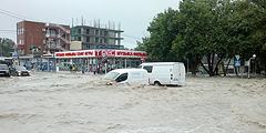 В результате наводнения сильно пострадал городской пляж Геленджика, вся набережная оказалась залита водой (фото: 23.mvd.ru)