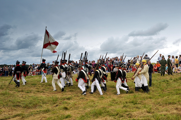 В сражении приняли участие реконструкторы из Гатчины, Выборга и Санкт-Петербурга, которые представляли различные рода войск (фото: ИТАР-ТАСС)